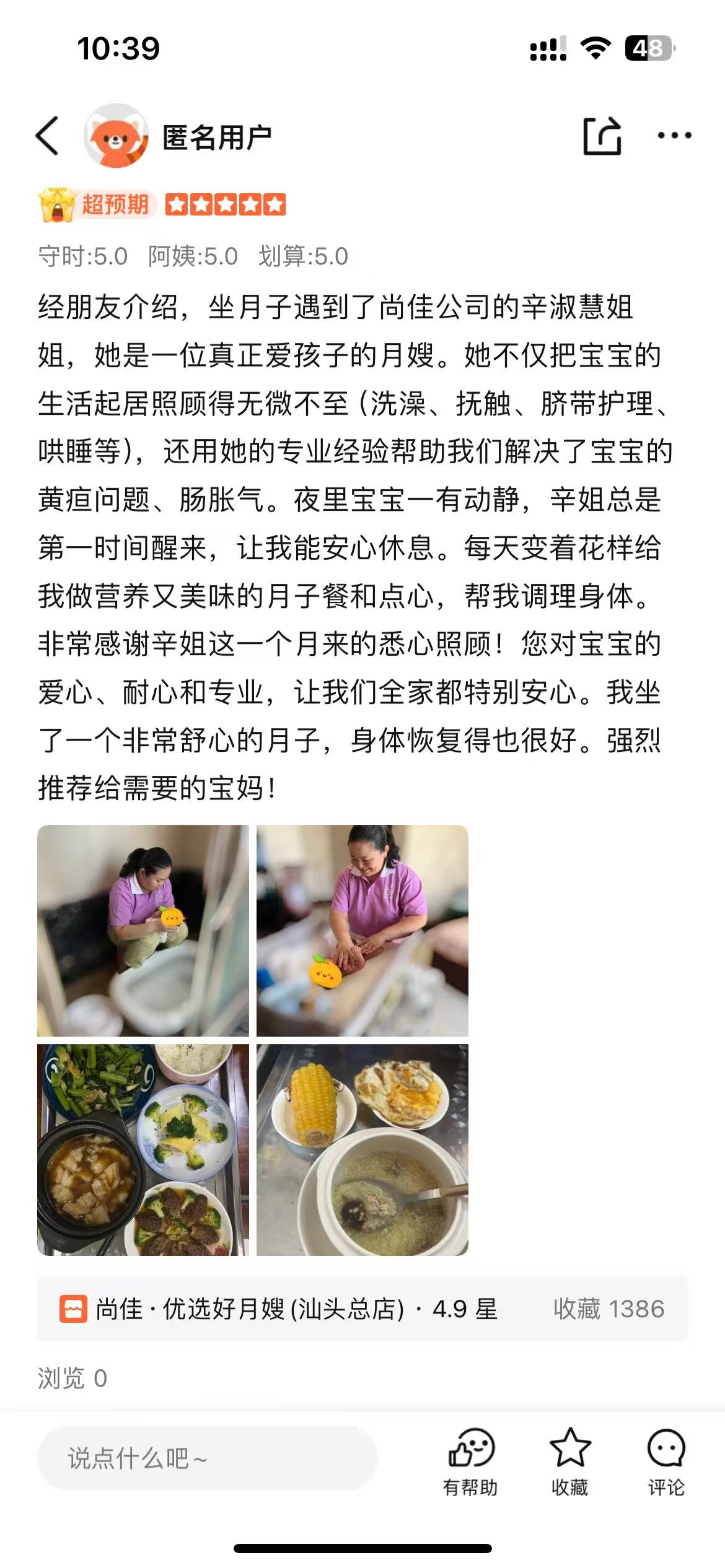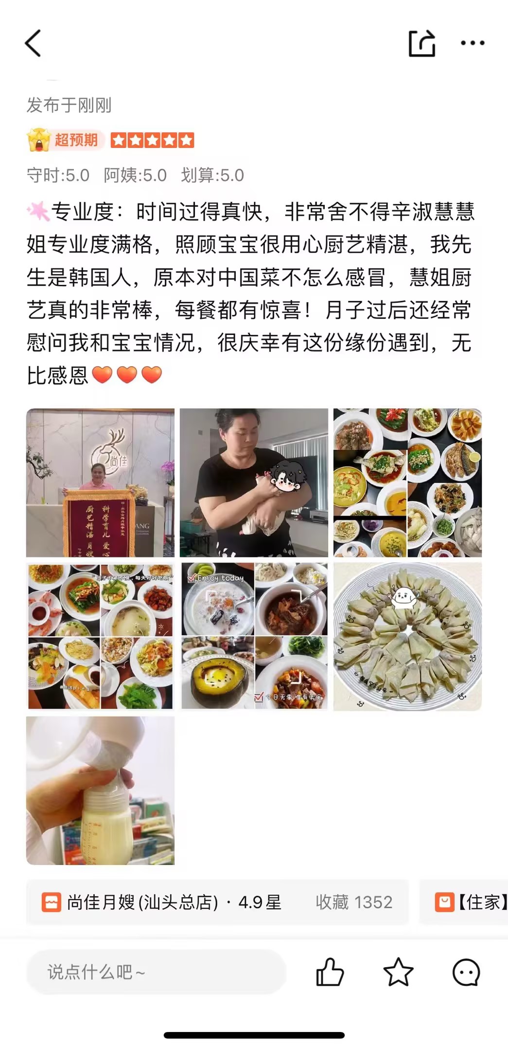 辛姐是湖北人,性格開朗,做事認(rèn)真負(fù)責(zé)。在潮汕地區(qū)服務(wù),一直獲得許多客戶的好評(píng)。在溝通、做事方面都非常的有條理,情商高,護(hù)理細(xì)心,她在護(hù)理寶寶方面很有耐性有經(jīng)驗(yàn),在照顧產(chǎn)婦的時(shí)候周到,很愛干凈,做的月子餐很合寶媽胃口,廚藝也是非常的棒,服務(wù)過的寶媽都贊不決口。