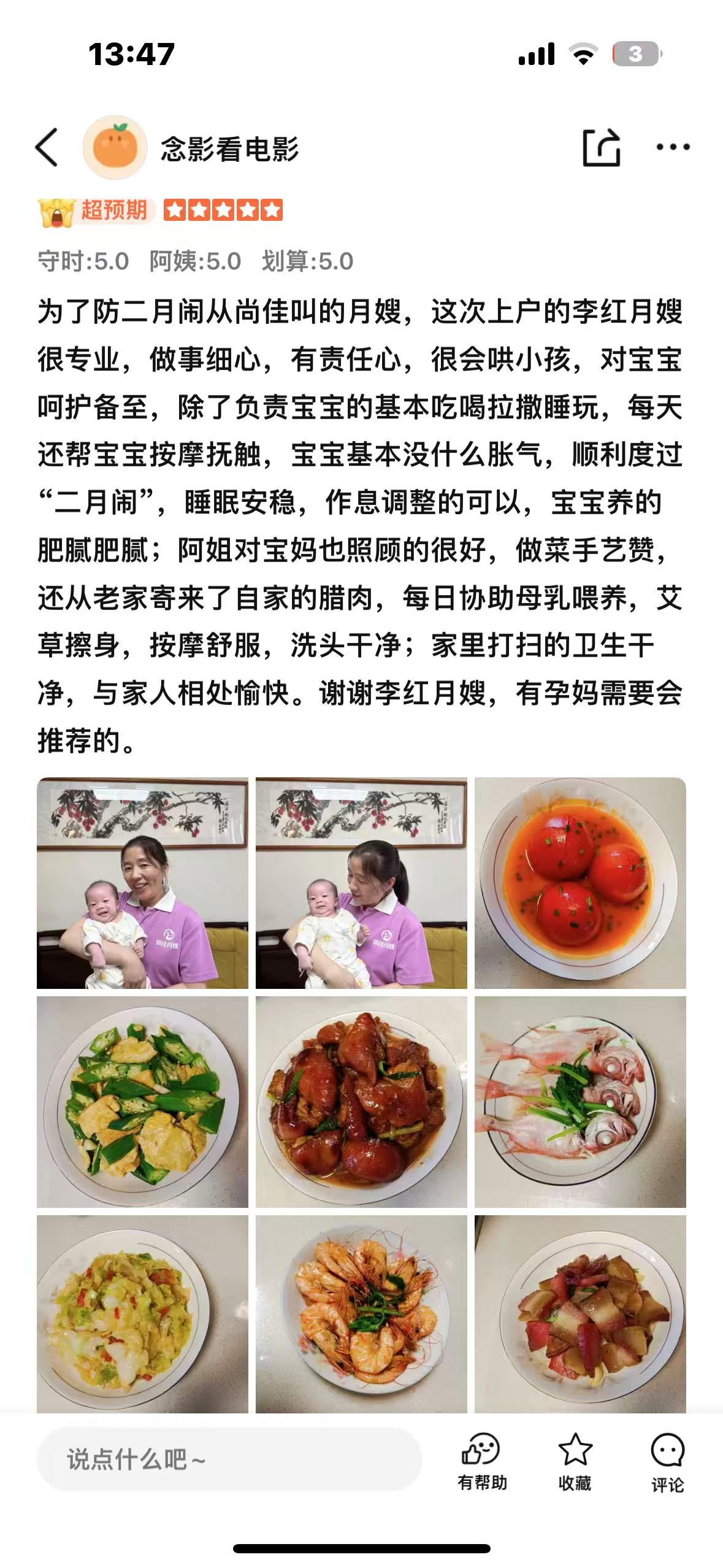 李紅來自湖南,在潮汕做月嫂已有多年,紅姐最大的特點就是性格溫和,對寶媽關(guān)心有佳,并且護理的也很細心,不管是對寶寶還是對寶媽,都能細心照料,注重細節(jié),溝通能力好,做的月子餐也是具有潮汕風味!
